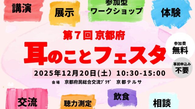 「耳のことフェスタ」は「聞こえに不便や不安があっても、安心して暮らせるまちづくり」をめざし、聴覚障害者だけでなく、府民を対象に聞こえに関する啓発やコミュニケーション支援機器の展示、体験や交流を目的にしています。